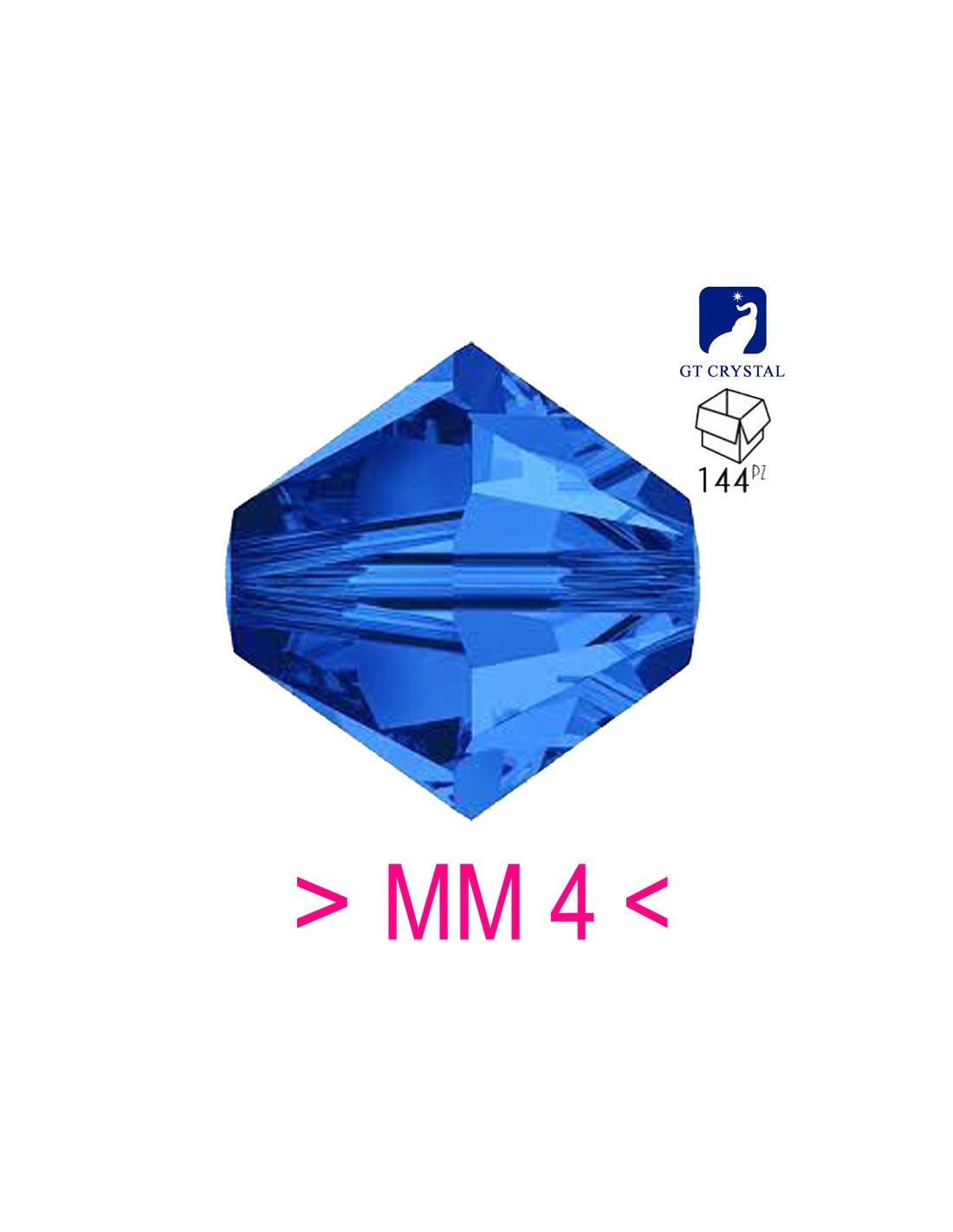 The Mc Crystal Bicone 4 mm Sapphire is supplied in packs of 144 pcs.