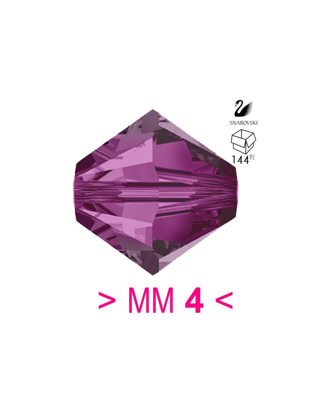 The bicone in Swarovski mm 4 Fuchsia is supplied in packs of 144 pcs.