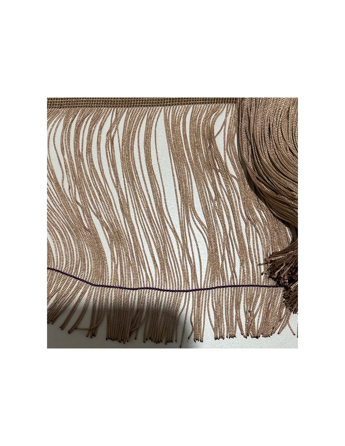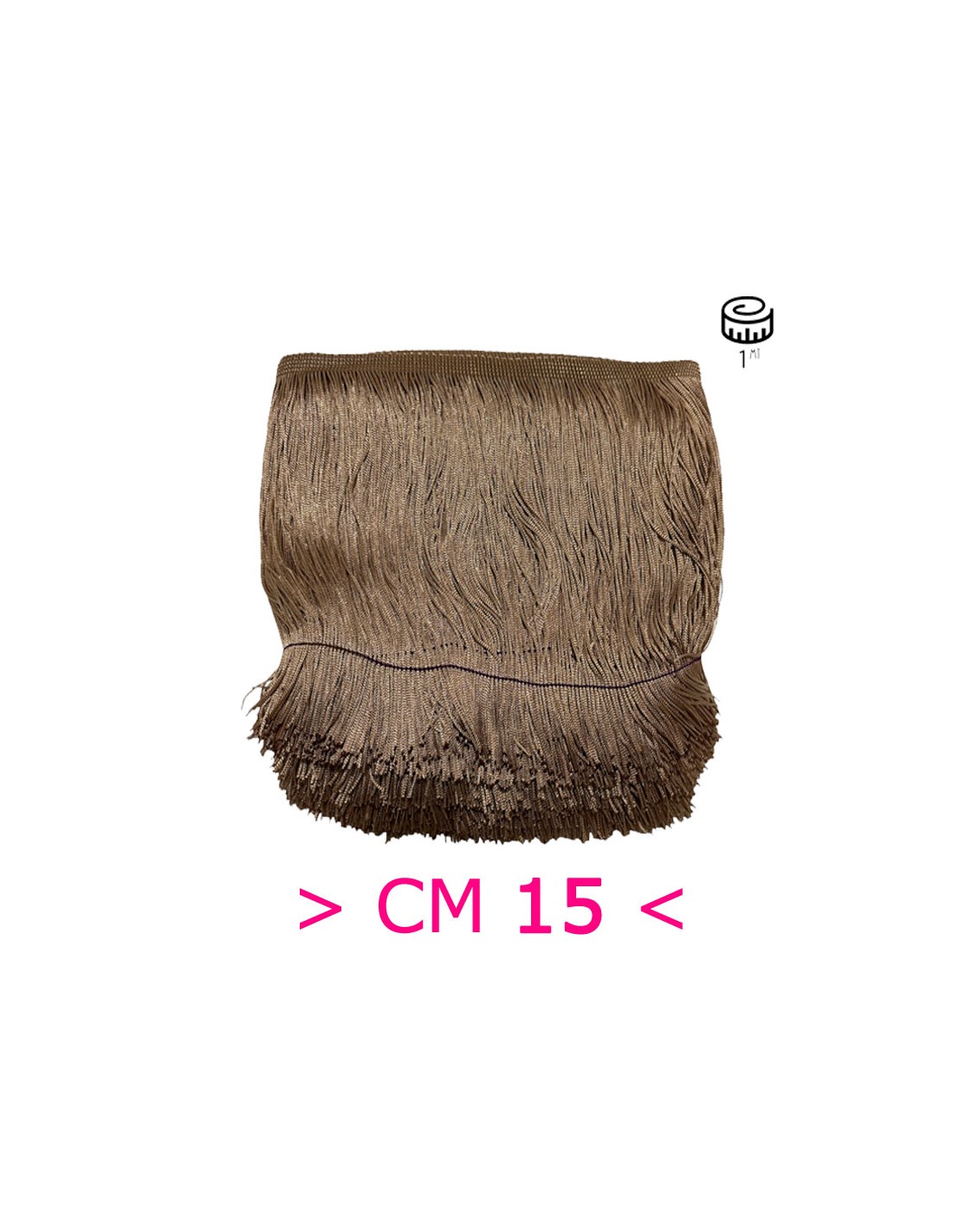 The Camel Tripolino Fringe is made with fabric measuring 15 cm.
