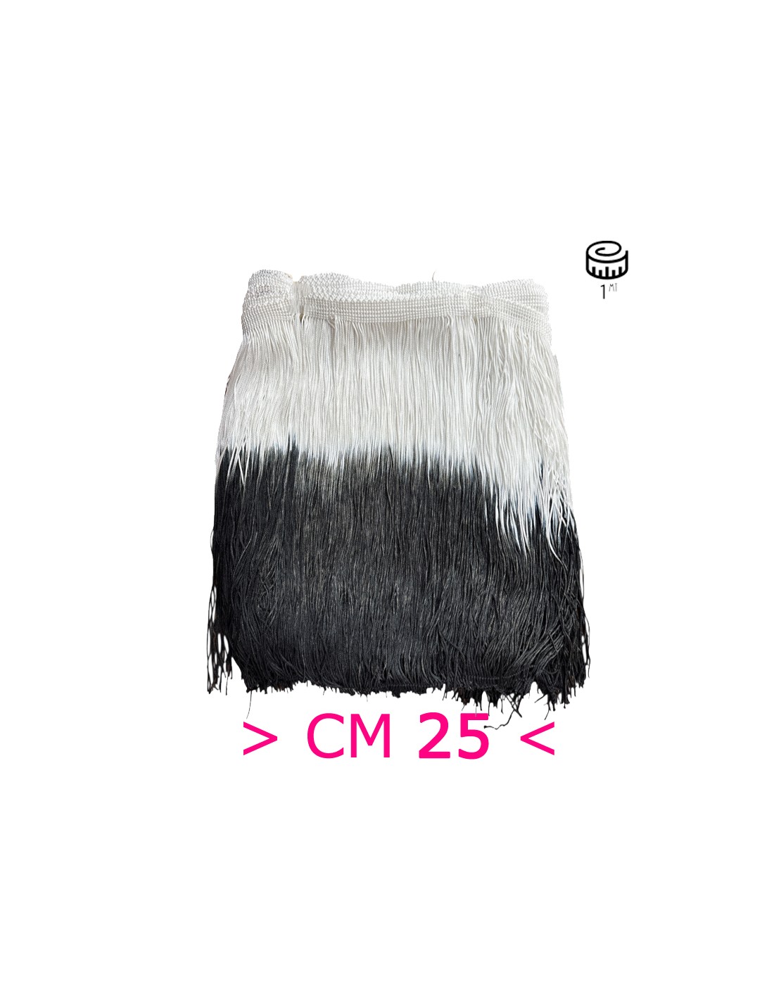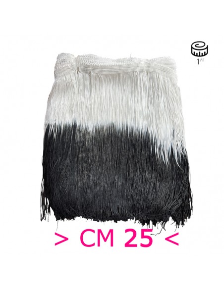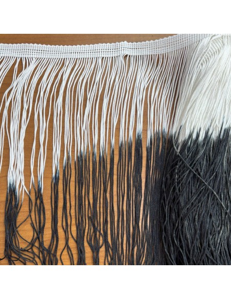 The White-Black Tripolino Two-tone Fringe is made with fabric measuring 25 cm.