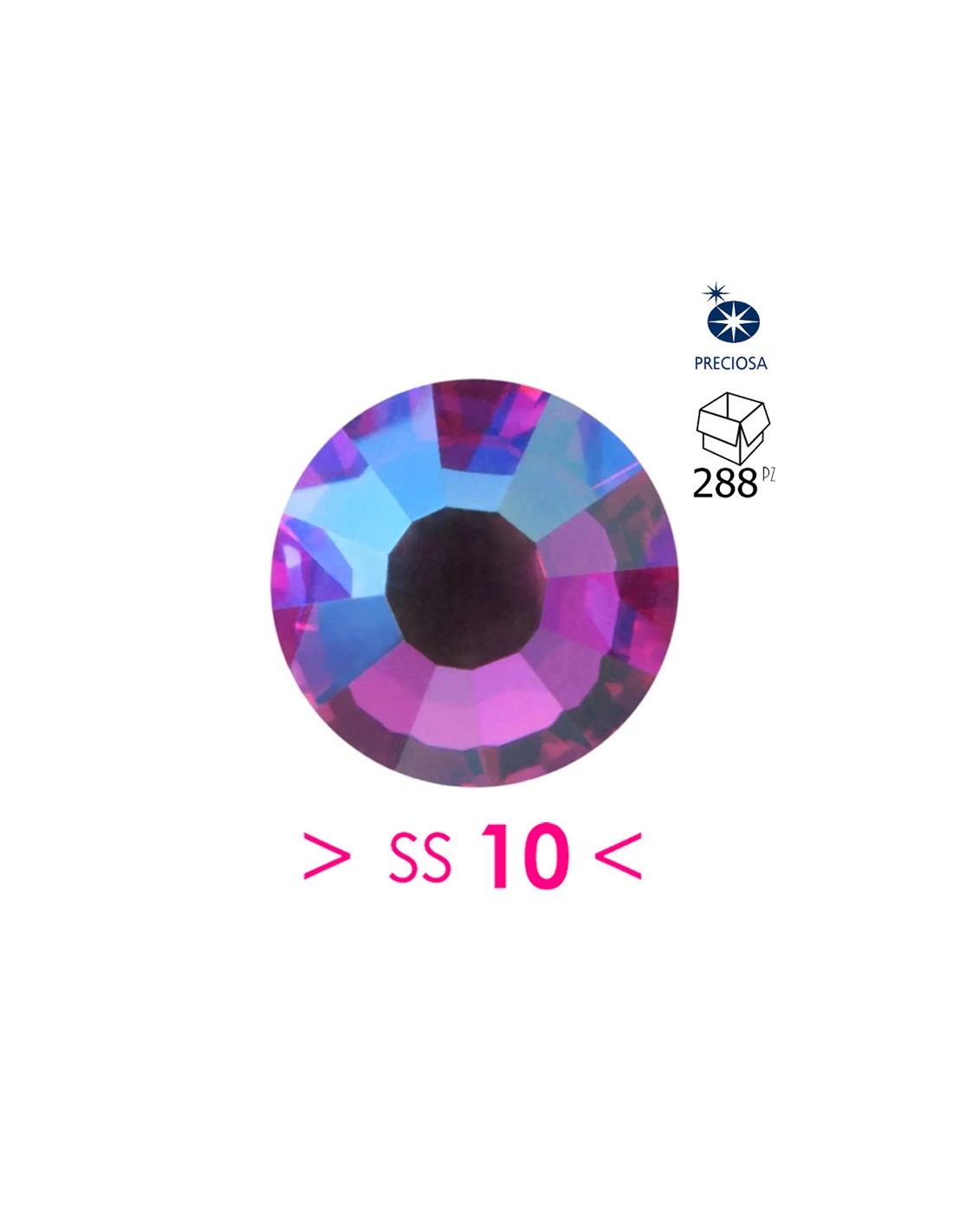 The Crystal is presented in Fuchsia ab color with 12 shiny faces measuring 10 ss corresponding to 2.80 mm.