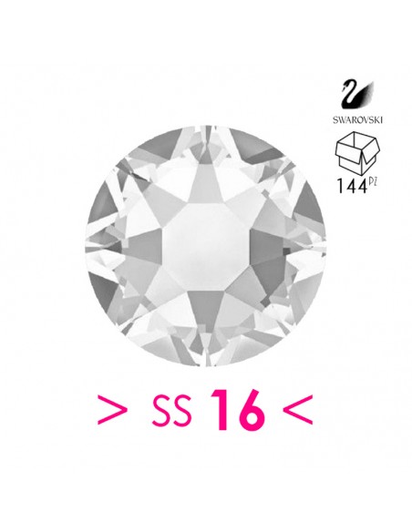 The strass in pure Swarovski crystal is presented in Crystal with 16 shining faces with an exclusive Swarovski Xirius Rose cut, size 16 ss, corresponding to 3.90 mm.