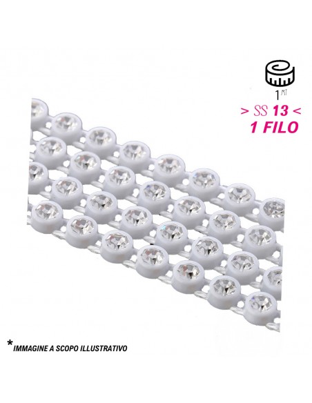 The Strass Banding Plastic White-Crystal ss 13 (mm3,30) is supplied in packs of 1 mt.