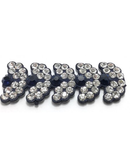 Trimming Strass Jewel Hotfix is glued by means of the thermo-adhesive silicone layer placed in the lower part of the jewel's rhinestone border. It is composed of a layer of porous fabric in the shape of leaves placed on both sides on which the crystal and Montana colored MC chatons are set and glued.