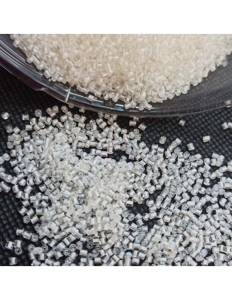 The Bugle Preciosa with 2 cuts 12/0 (mm 1,9) White Laquered made using a unique technology, a glass tube is cut with a hexagonal surface, drilled on the inside, which is continuously and finely rolled up to smooth any part that has sharp smears, and then polished to focus.