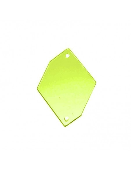 The Sewing mirror in Acrylic GT Crystal Rhombus six sides Fluo Green size 24x34 mm, is flat bottomed and has two holes in the upper side for application with needle and thread and is protected by scratch-resistant film, to be removed before applying the mirror on your dress.