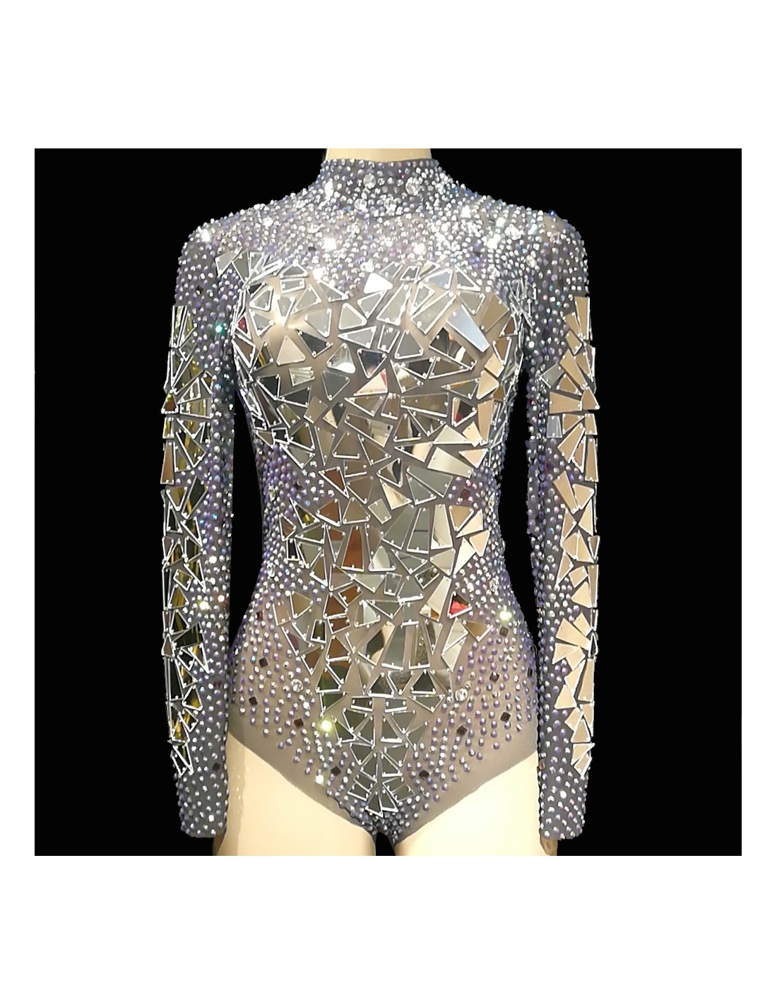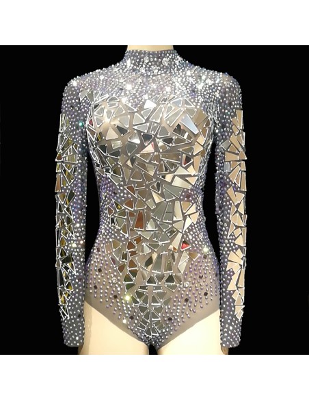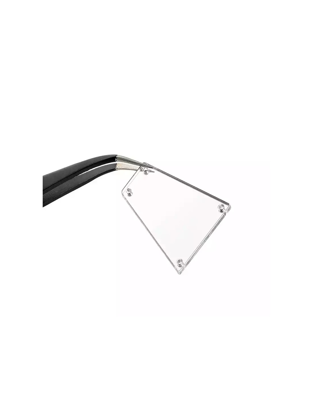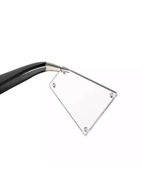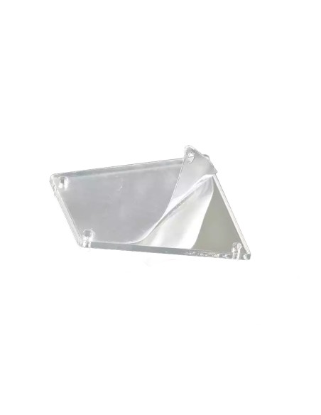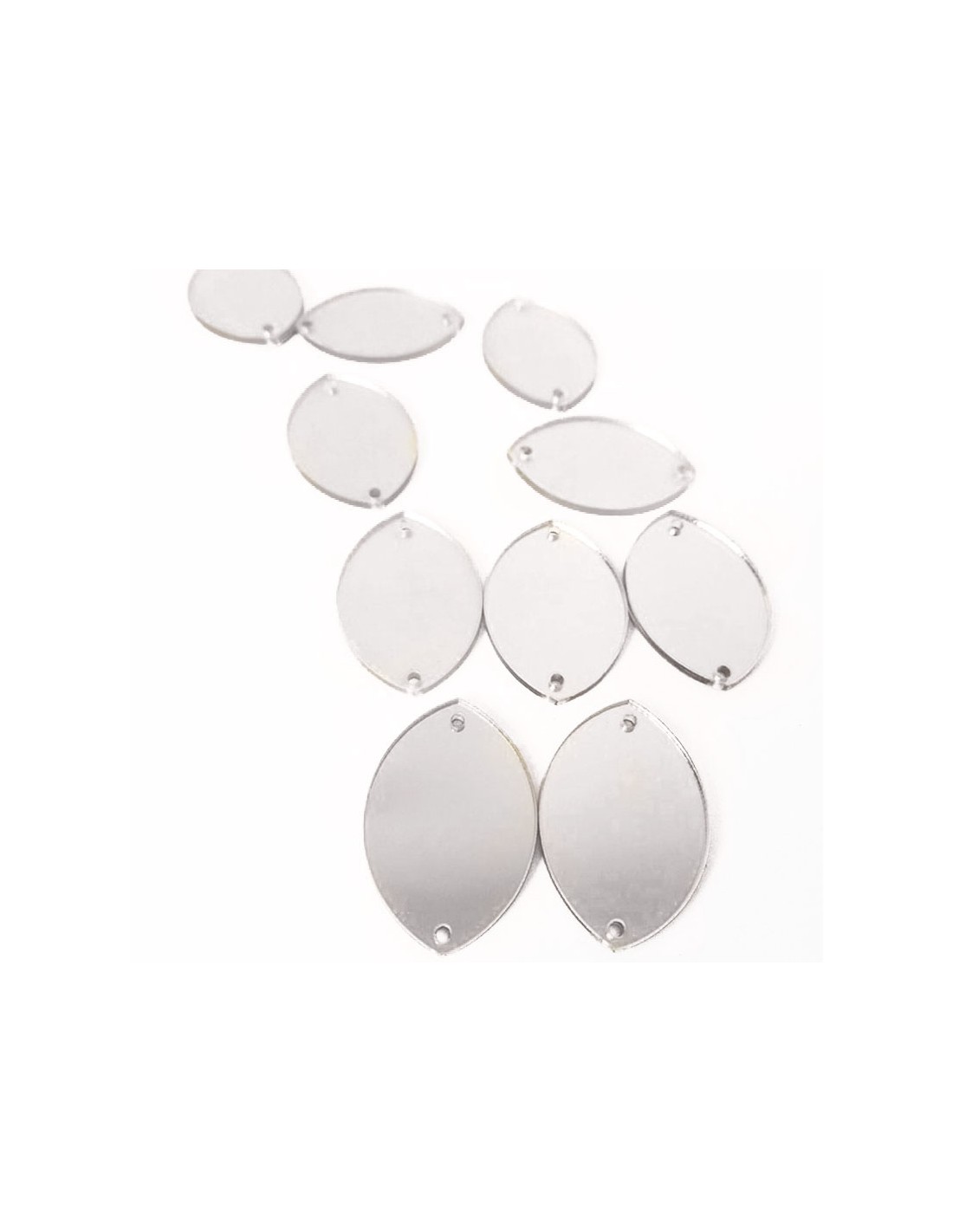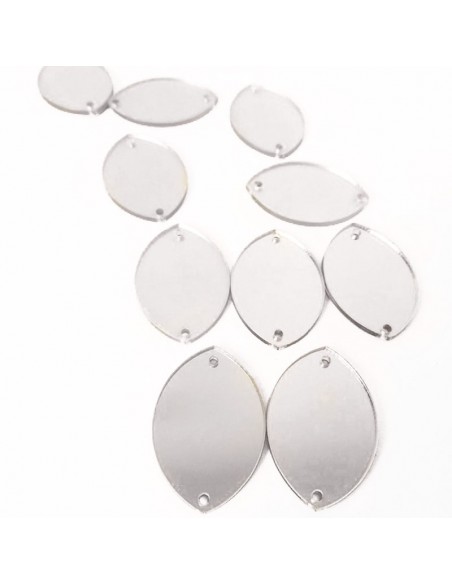 The Sewing mirror in Acrylic GT Crystal Silver Shuttle size 40 mm in height and 19 mm in width, and 'flat-bottomed and e' equipped with two holes in the top side for the application with needle and thread and and 'protected by scratch-resistant film, to be removed before application of the mirror on your clothes.