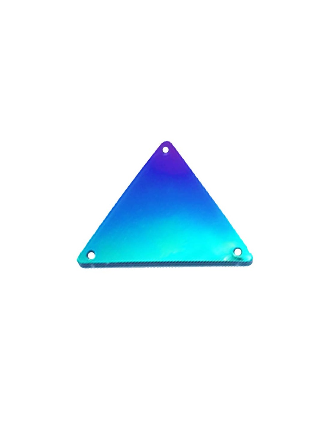 The GT Crystal Triangle Rainbow Acrylic Sewing Mirror measures 23 mm, has a flat bottom and has two holes in the upper side for application with needle and thread.