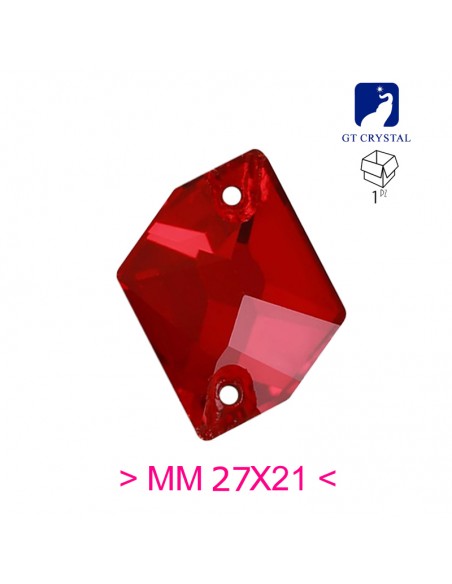 The Stone shaped cosmic in Crystal GT Crystal Siam size 27 mm in height and 21 mm in width, flat at the bottom and has two holes in the upper side for application with needle and thread.