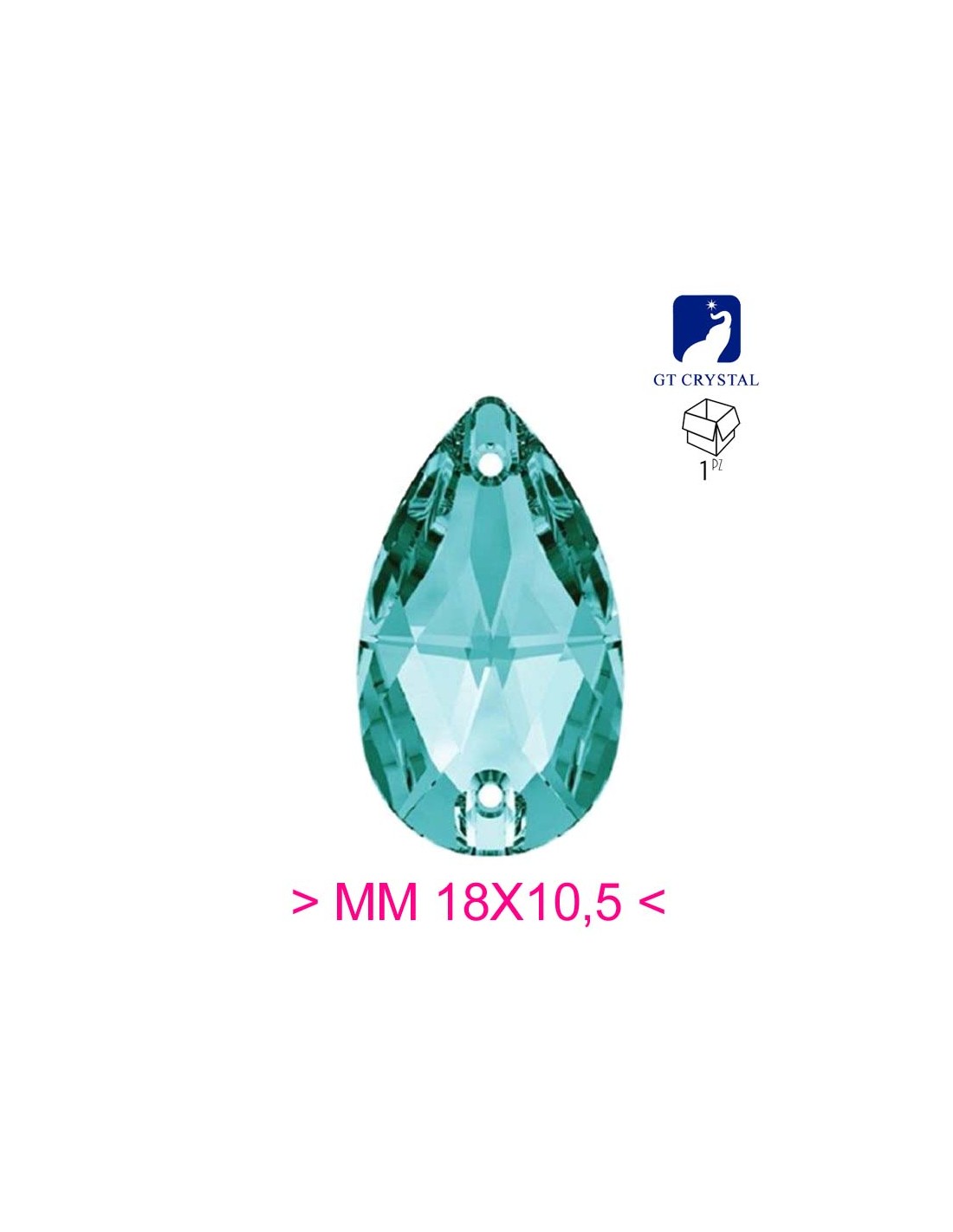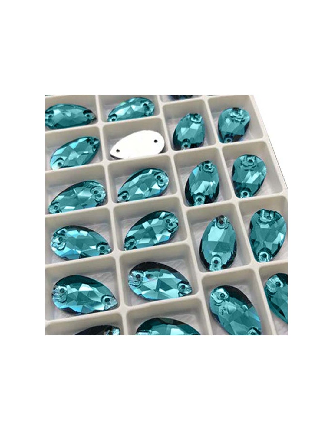 The Stone shaped Drop sewing in Blu Zircon GT Crystal is supplied in packs of pcs. 1