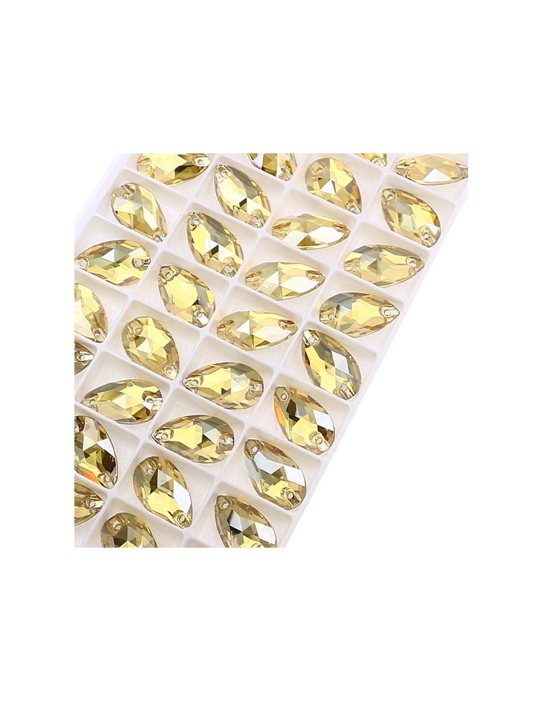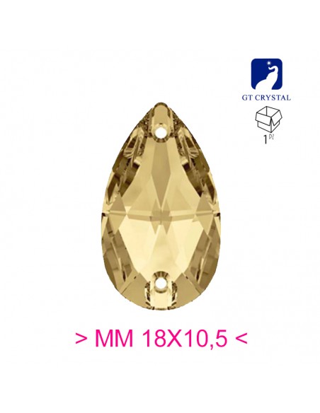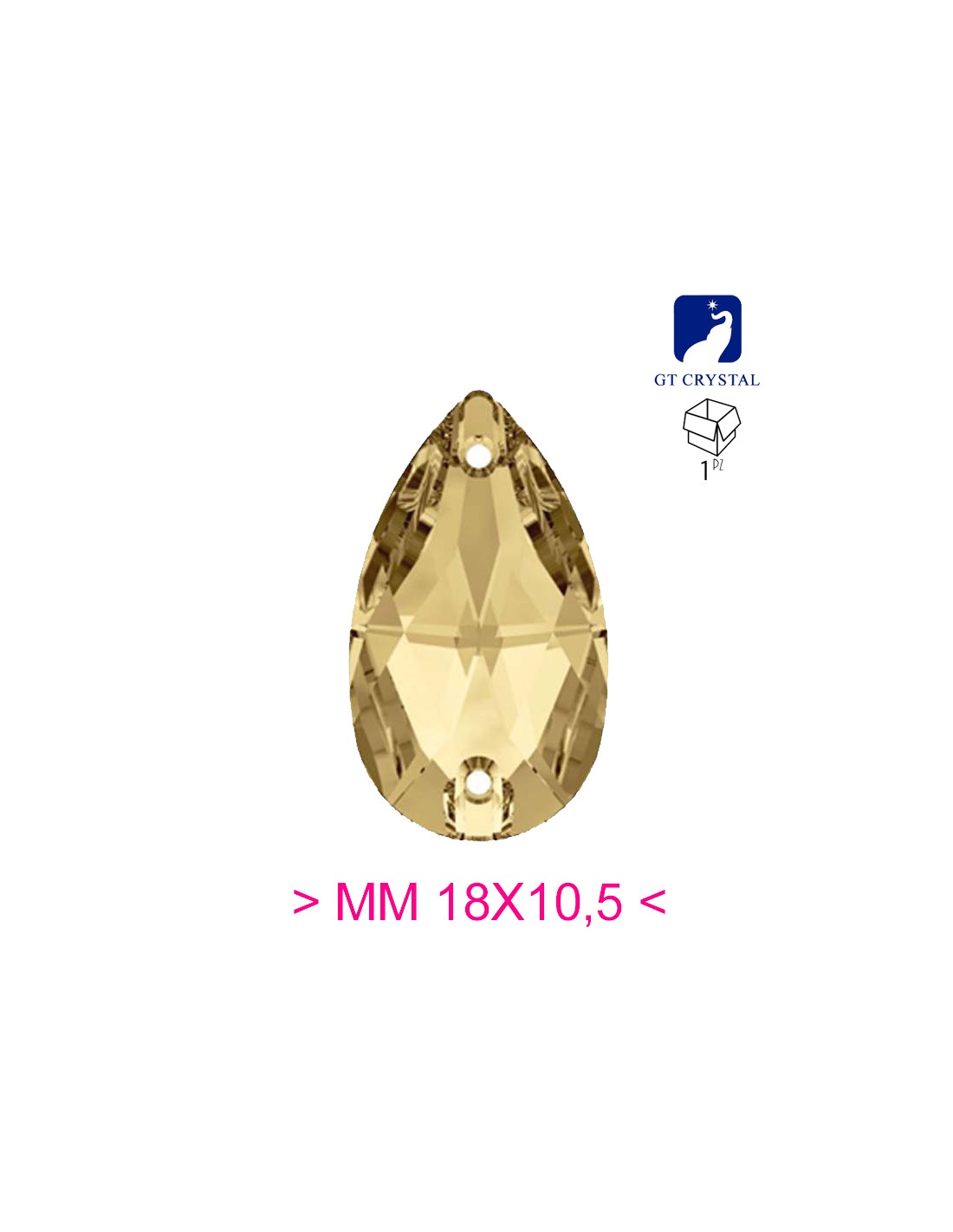The Stone shaped Drop sewing in Crystal GT Crystal Golden Shadow size 18 mm in height and 10.5 mm in width, flat at the bottom and has two holes in the upper side for application with needle and thread.