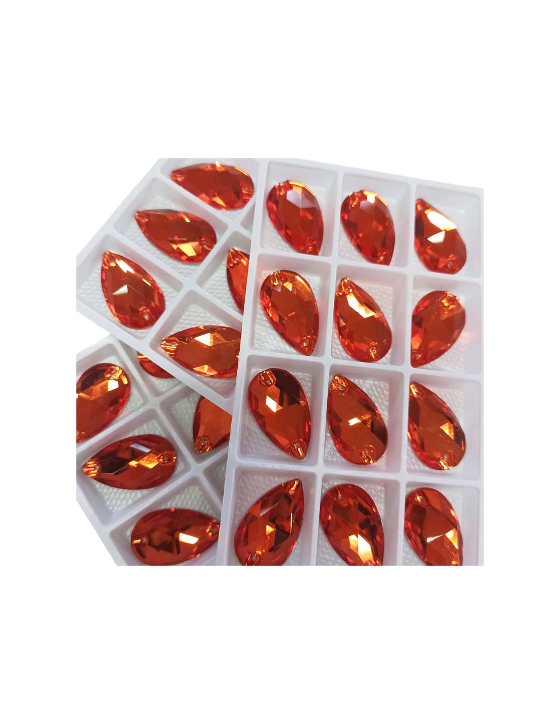 The Stone shaped Drop sewing in Crystal GT Crystal Sun size 18 mm in height and 10.5 mm in width, flat at the bottom and has two holes in the upper side for application with needle and thread.