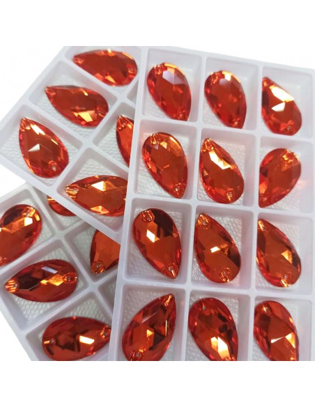 The Stone shaped Drop sewing in Sun GT Crystal size 28 mm in height and 17 mm in width, flat at the bottom and has two holes in the upper side for application with needle and thread.