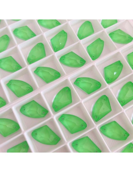 The Stone shaped Galactic sewing in Crystal Fluo Green GT Crystal size 19 mm in height and 12 mm in width, flat at the bottom and has two holes in the upper side for application with needle and thread.