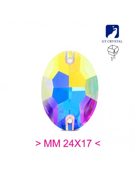 The Stone sewing shaped Oval in Aurora Borealis GT Crystal is supplied in packs of 1 pcs.