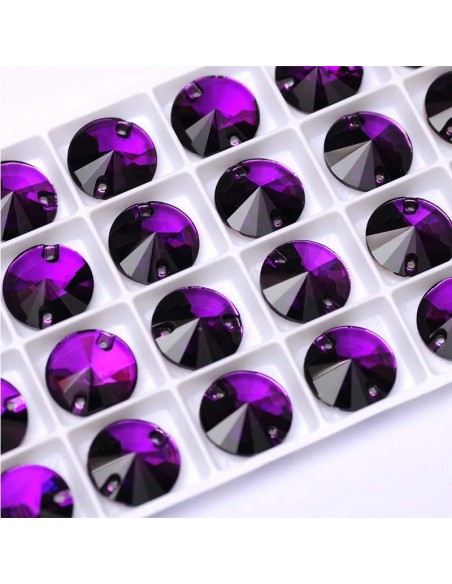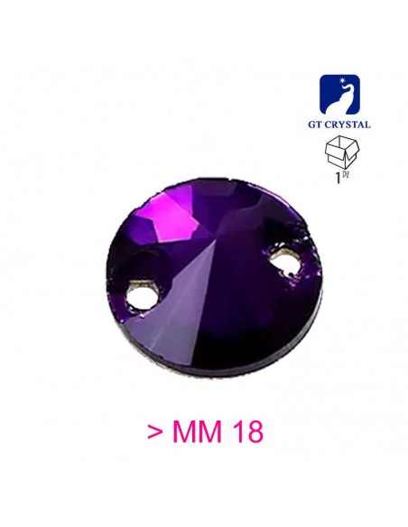 The Stone sewing shaped Round in Purple Velvet GT Crystal size 18 mm flat at the bottom and with two holes in the upper side for application with needle and thread.