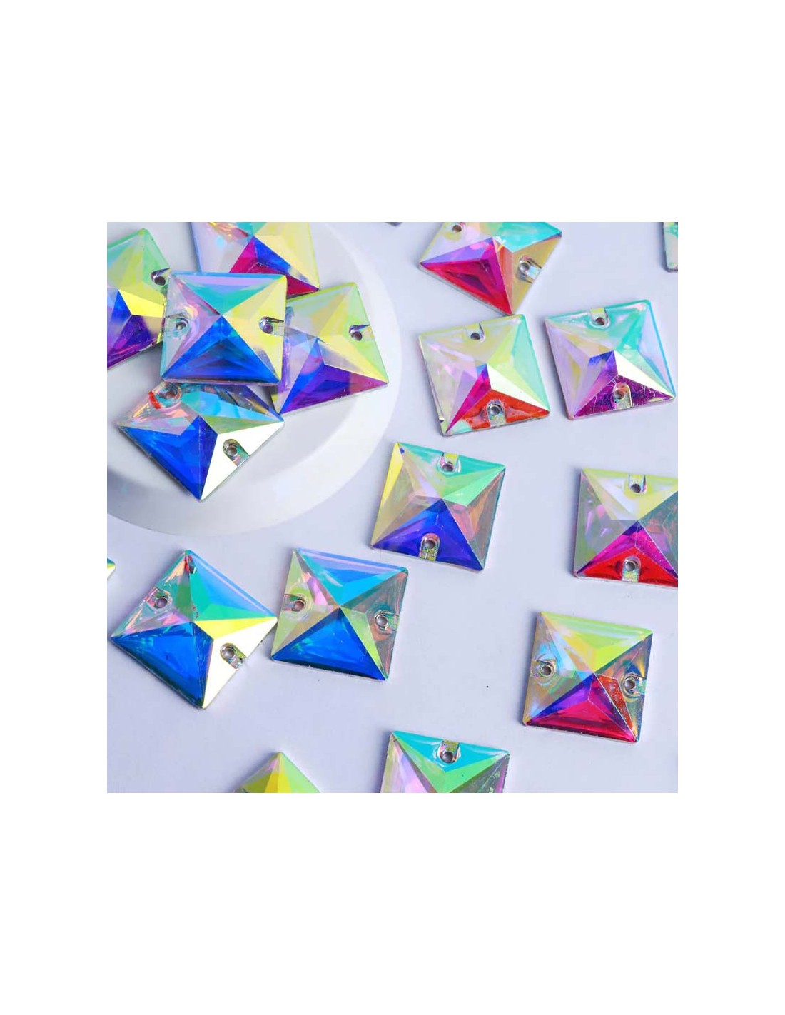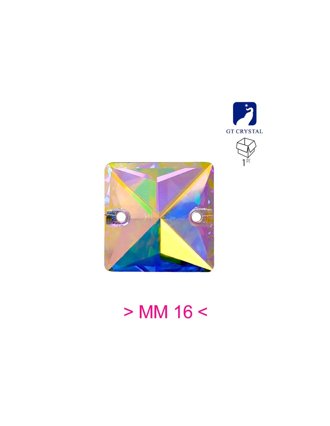 The Stone sewing shaped Square in Crystal Aurora Borealis GT Crystal is supplied in packs of 1 pcs