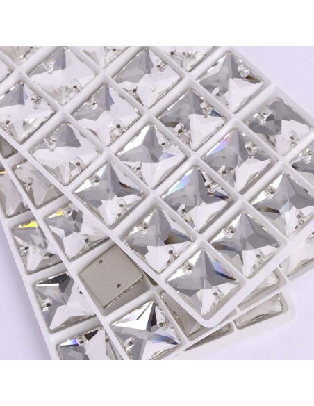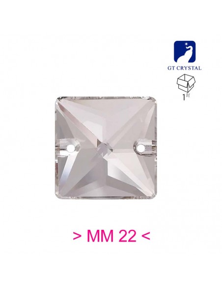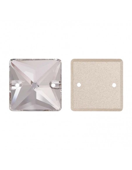 The Stone sewing shaped Square in Crystal GT Crystal size 22 mm flat at the bottom and has three holes at the corners for application with needle and thread.