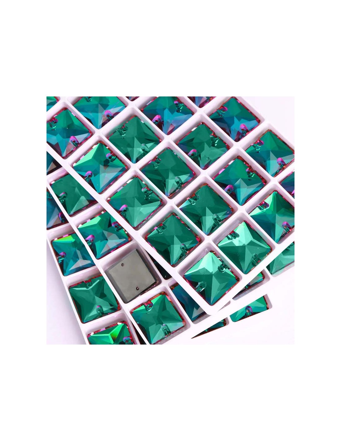 The Stone sewing shaped Square in Emerald GT Crystal is supplied in packs of 1 pcs