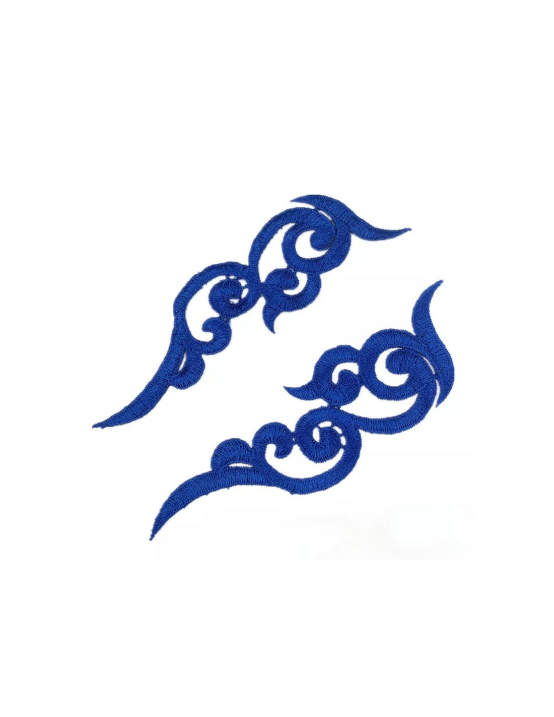 L’applicazione in Tessuto colore Blu misura cm 16 in lunghezza e cm 5.5 in larghezza viene creata in tessuto ricamato.