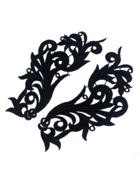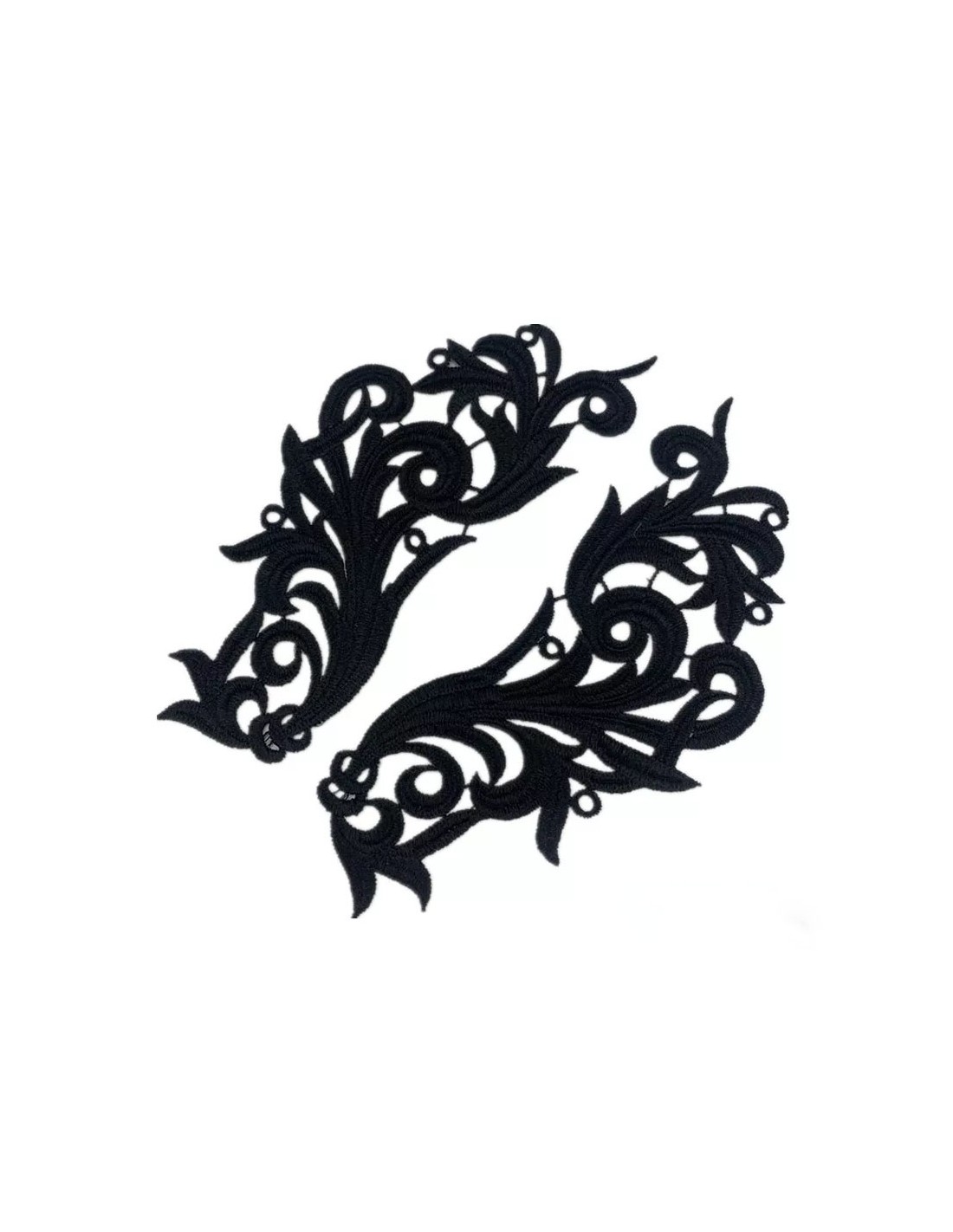 L’applicazione in Tessuto colore Nero misura cm 22 in lunghezza e cm 9 in larghezza viene creata in tessuto ricamato.
