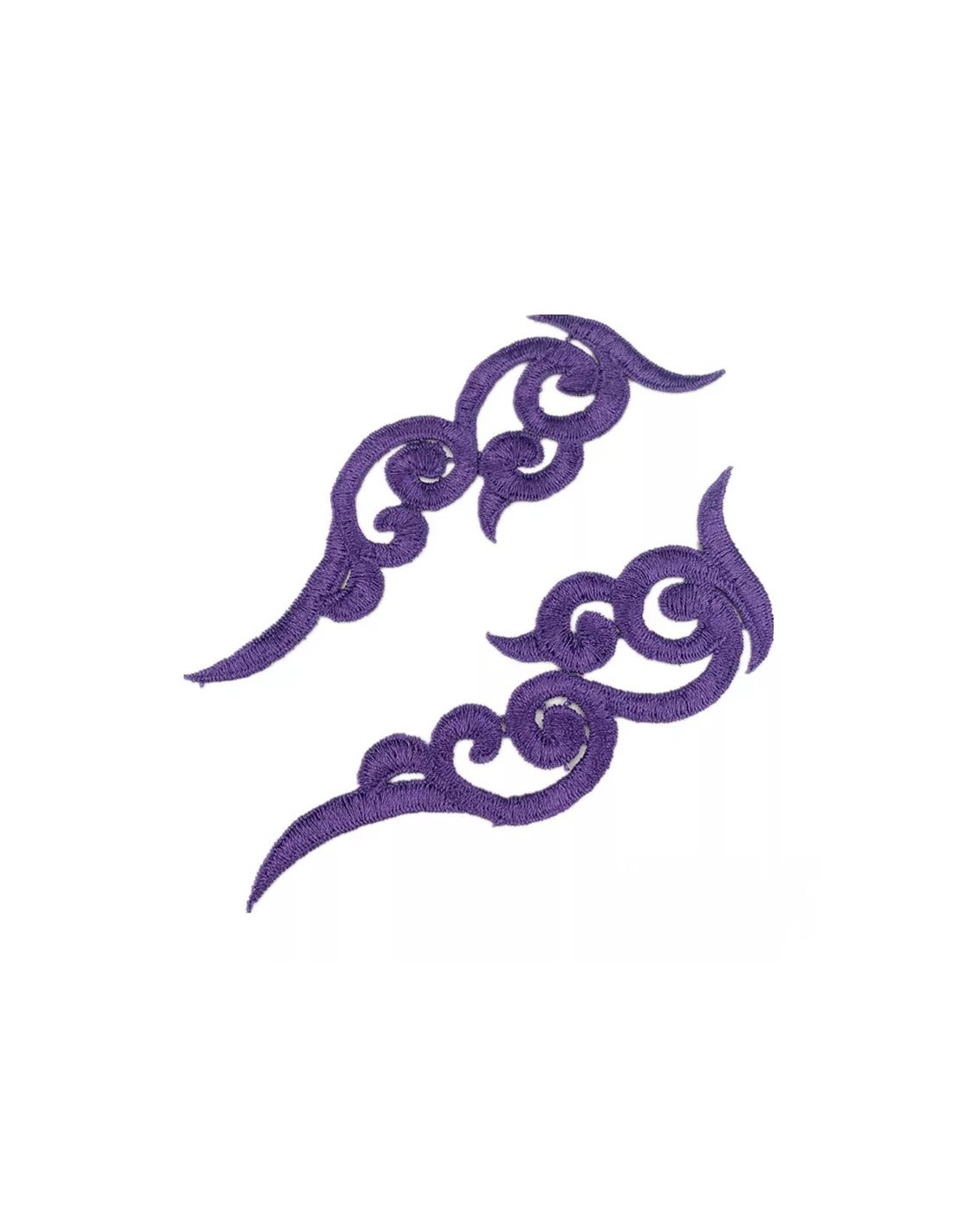 L’applicazione in Tessuto colore Viola misura cm 16 in lunghezza e cm 5.5 in larghezza viene creata in tessuto ricamato.