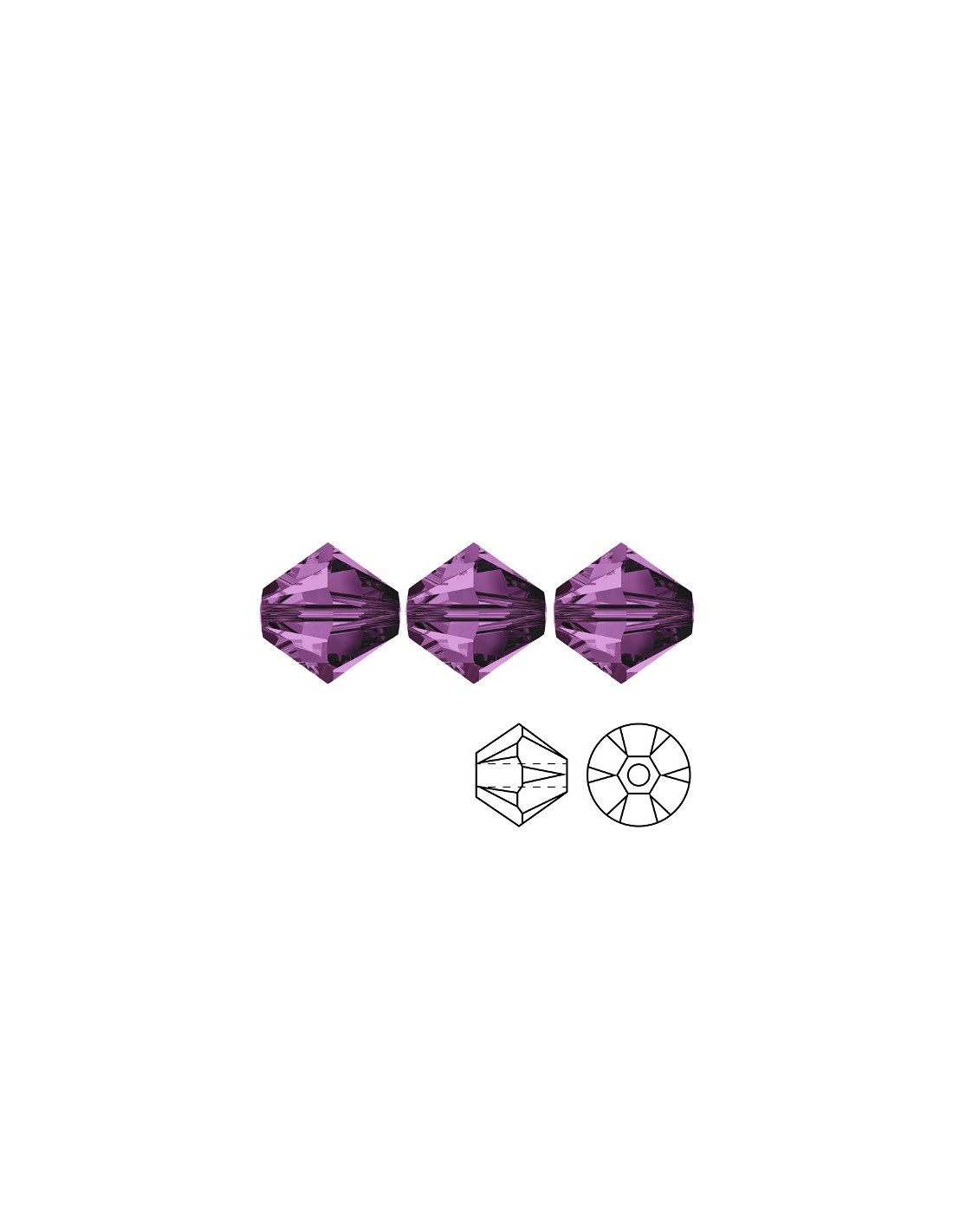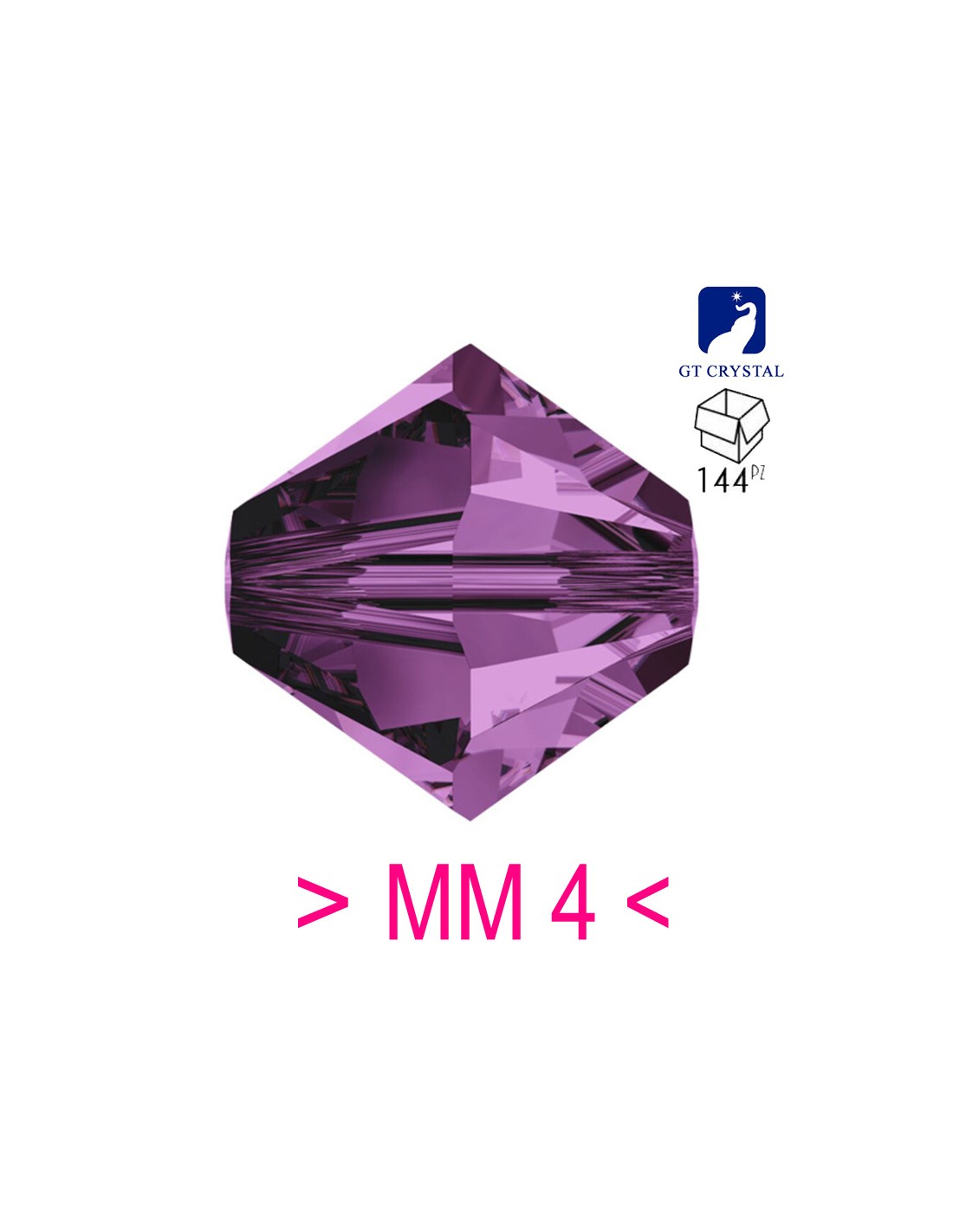 Il Bicono in Cristallo Bohemo Mc Crystal mm 4 Amethyst viene fornito in pacchi da 144 pz.