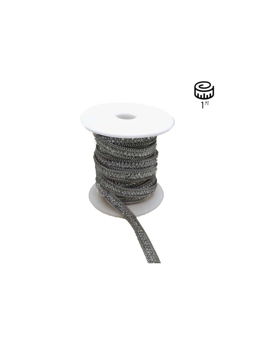 Bordura Strass Gioiello termoadesiva mm 8 Hematite- Pacco cm 20.