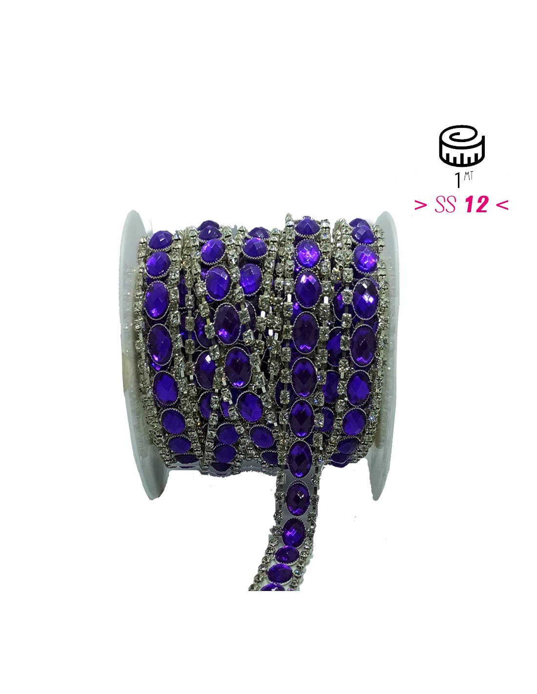 Catena Strass Gioiello cm 1,6 Strass Crystal-Pietra Purple-Silver Pacco cm. 20