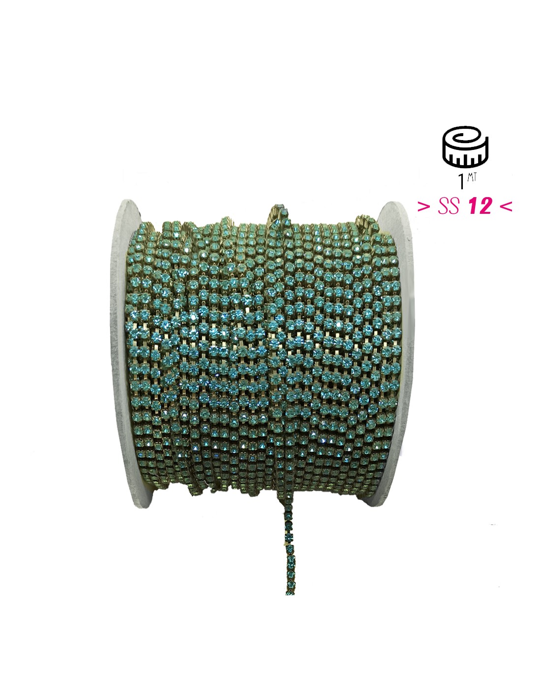 La catena strass ss12 (mm3,20) ad 1 filo, viene fornita in lotto da cm. 20, proprio per le sue dimensioni adatta per eseguire dei lavori su manufatti o capi d'abbigliamento molto ricercati e di qualita'.