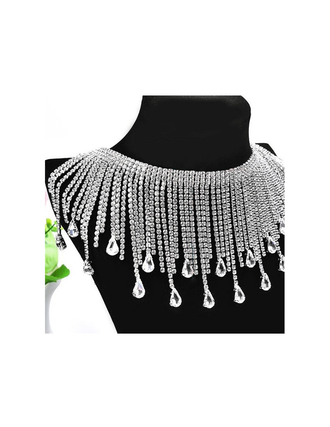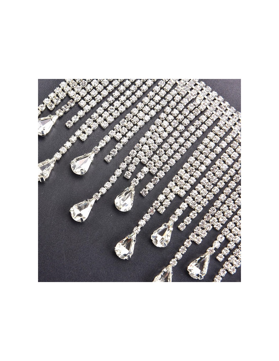 La Frangia Strass Gioiello si puo’ cucire o incollare. E’ composta da una Catena Strass ss 12 (mm 3,20) di colore Argento con strass di colore Crystal trasparente e un Cristallo incastonato a forma di goccia di colore Crystal trasparente.