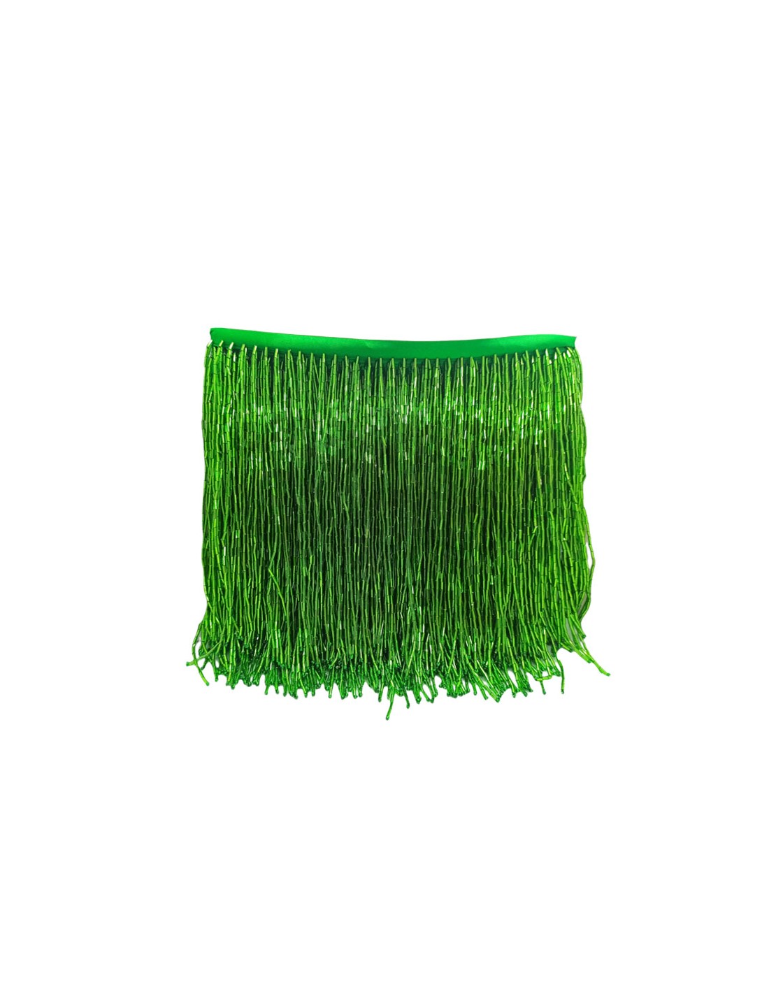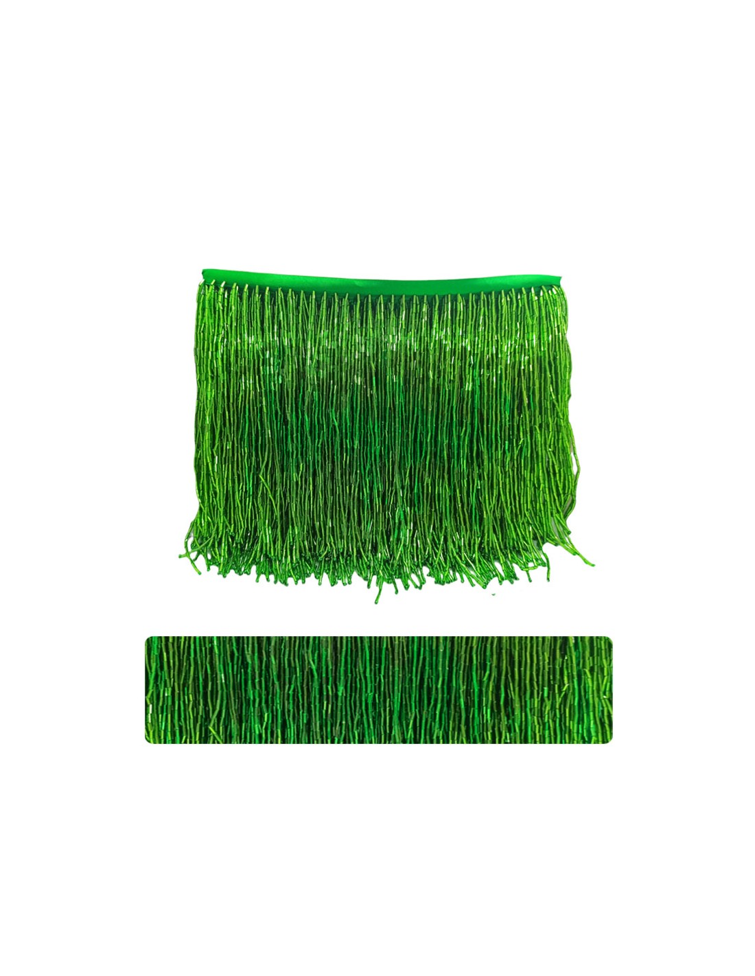 La Frangia a Cannette Rotonda liscia cm 15 Light Emerald con linea interna colore Argento super brillante, si puo’ applicare in molti contesti, ideale per arricchire Abiti di Danza Latino, Caraibico e altri.