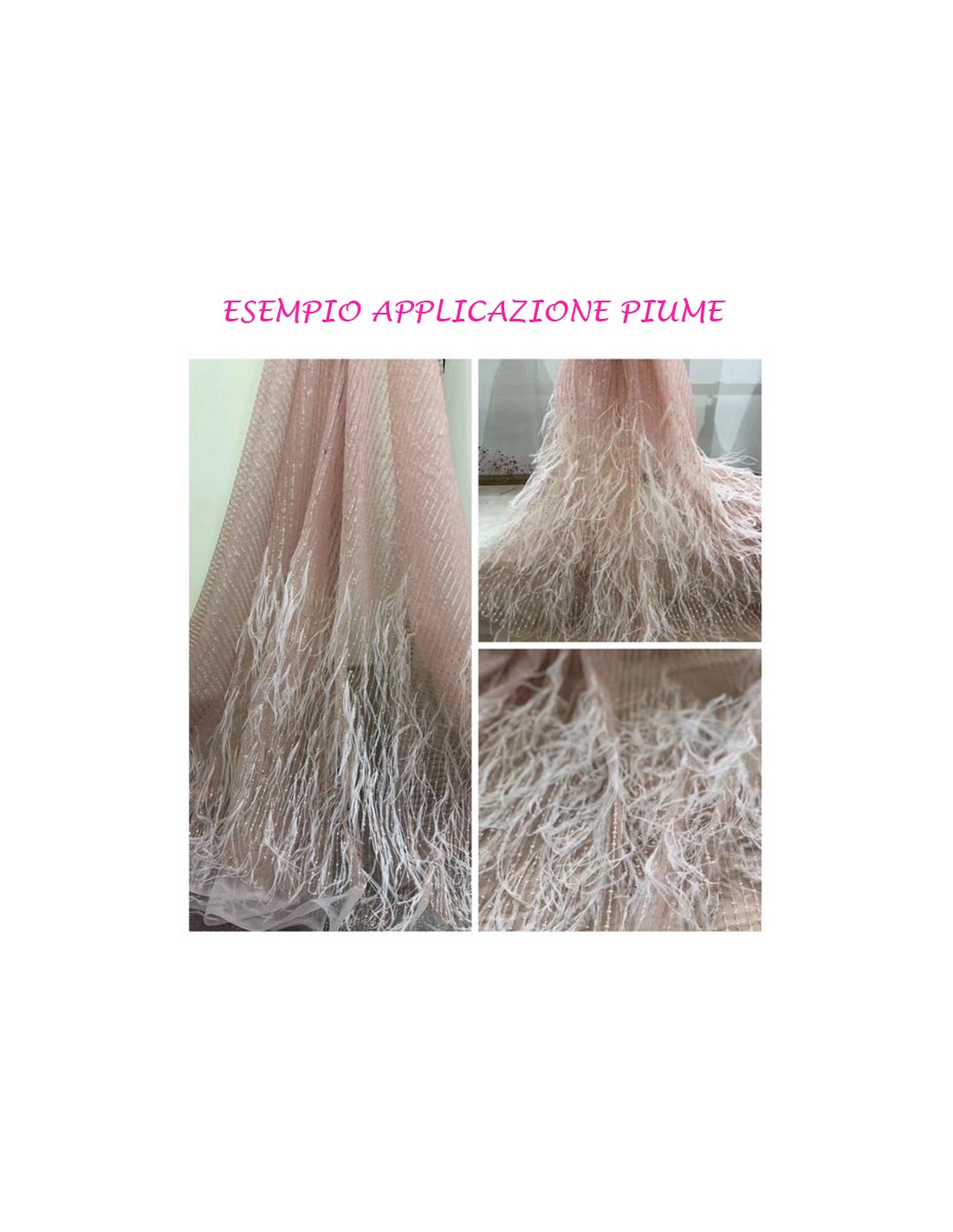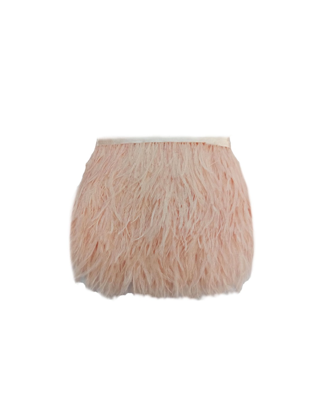 La Frangia Piume di Struzzo di colore Rosa Carne e' fatta con piume di misure varie da cm 10 a cm 15.