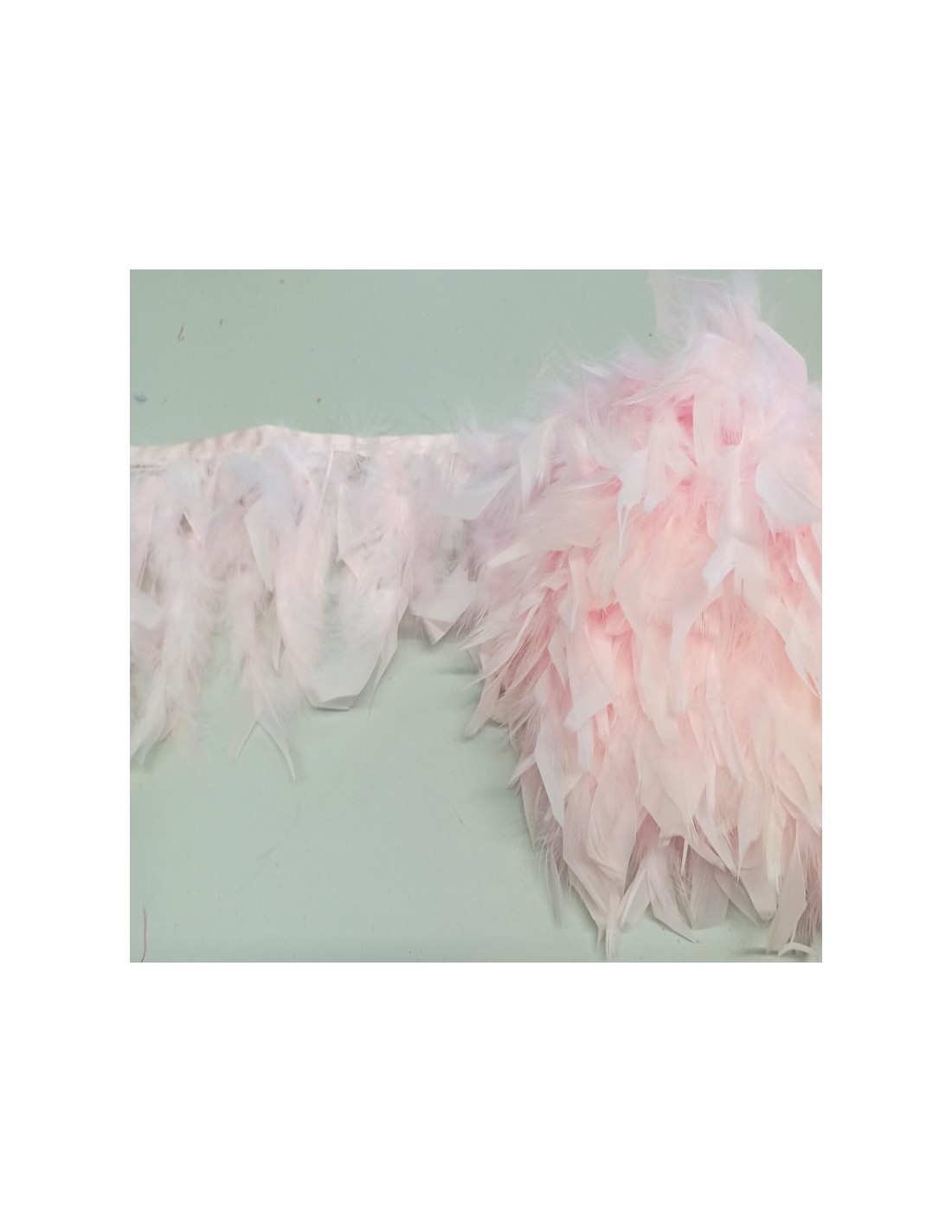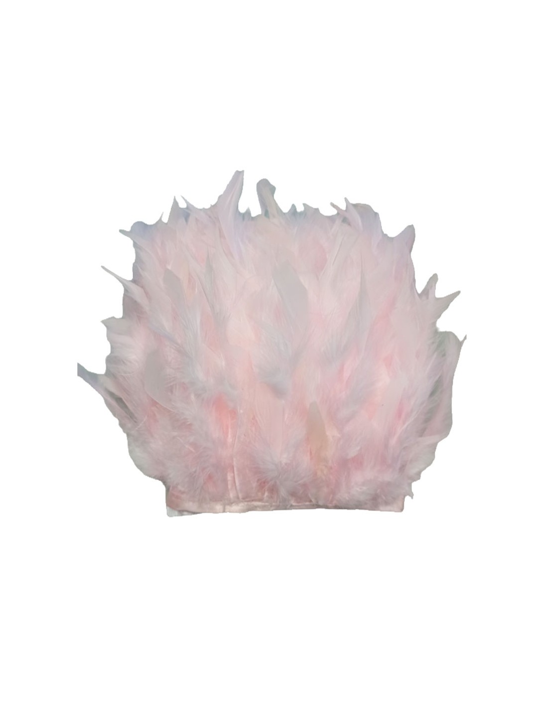 La Frangia Piume di Tacchino di colore Rosa Baby e' fatta con piume di misure varie da cm 10 a cm 12.