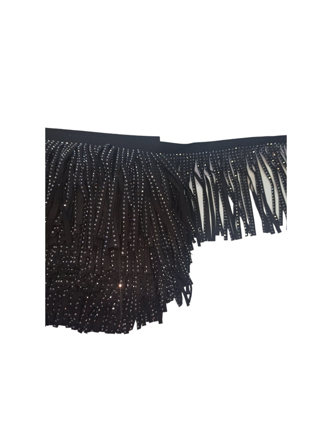 Frangia in Camoscio Nero cm. 14 con Strass Colore Hematite - Pacco 1 mt.