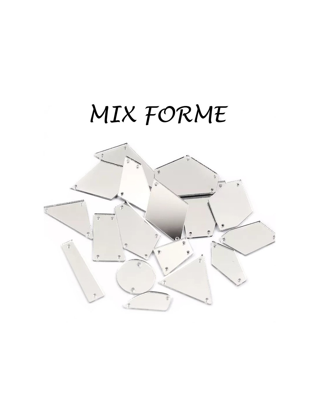 Gli specchietti da Cucire in Acrilico GT Crystal Argento forme miste , sono a fondo piatto, dotati di due fori nella parte laterale superiore per l’applicazione con ago e filo e sono protetti da film antigraffio, da togliere prima dell'applicazione dello specchietto sul vostro abito.