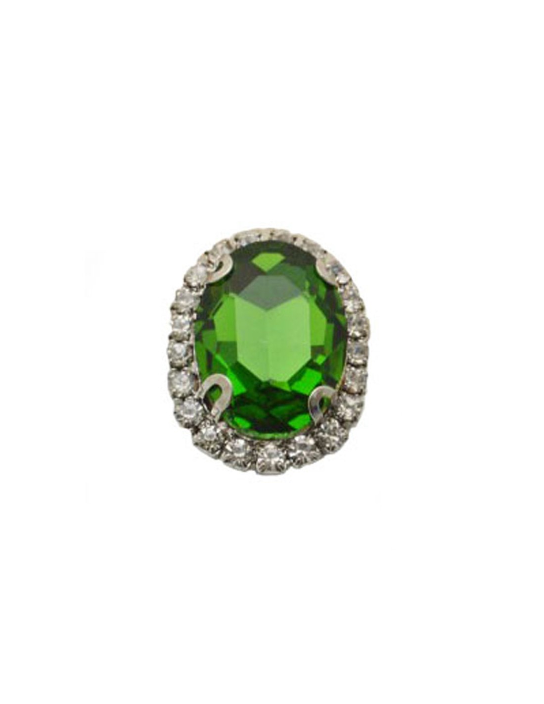 La Pietra Ovale incastonata cm 1,8X2,3 è montata su castone metallico di forma Ovale color argento, strutturato per contenere la pietra con fondo conico ed è contornato da una Catena Strass saldata ss 12 (mm 3.20) Crystal -Silver (Argento).