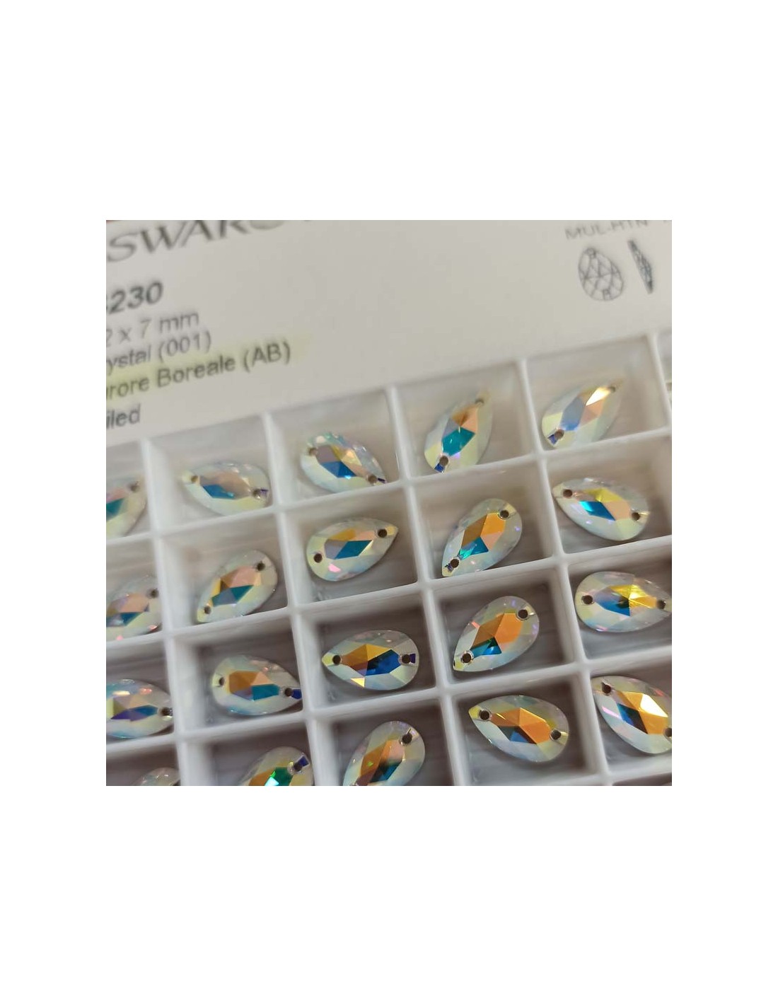 La pietra da cucire a forma di Goccia in Cristallo Swarovski Crystal Aurora Boreale viene fornita in pacco da pz. 1