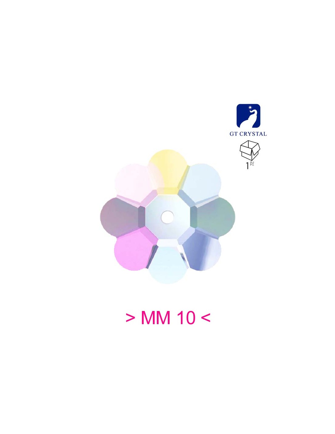 Pietra da Cucire in Cristallo GT Crystal Fiore mm 10 Crystal Aurora Boreale - Pacco 1 pz