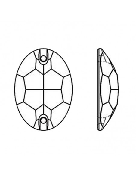 La pietra da Cucire in Cristallo GT Ovale Capri Blu misura mm 24 in altezza e mm 17 in larghezza, piatta nella parte inferiore ed dotata di due fori nella parte laterale superiore per l'applicazione con ago e filo.