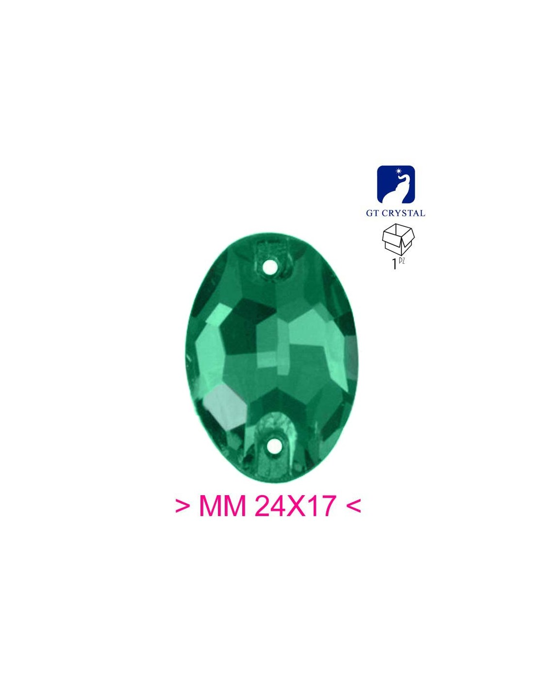 Pietra da Cucire in Cristallo GT Crystal Ovale mm 24x17 Emerald - Pacco 1 pz