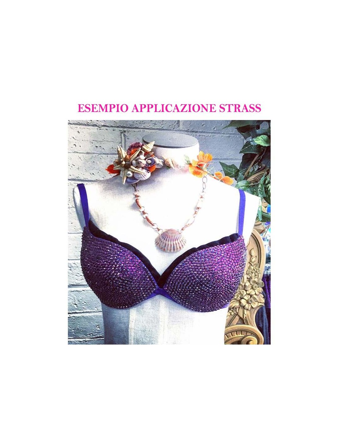 E' possibile applicare lo strass su diversi tipi di superficie e tessuti. Potrete far brillare tutto quello che volete, i vostri oggetti del desiderio, capi di abbigliamento, scarpe, borse, cappelli, ;body da gara, bijoux o per creare decorazioni particolari o disegni.